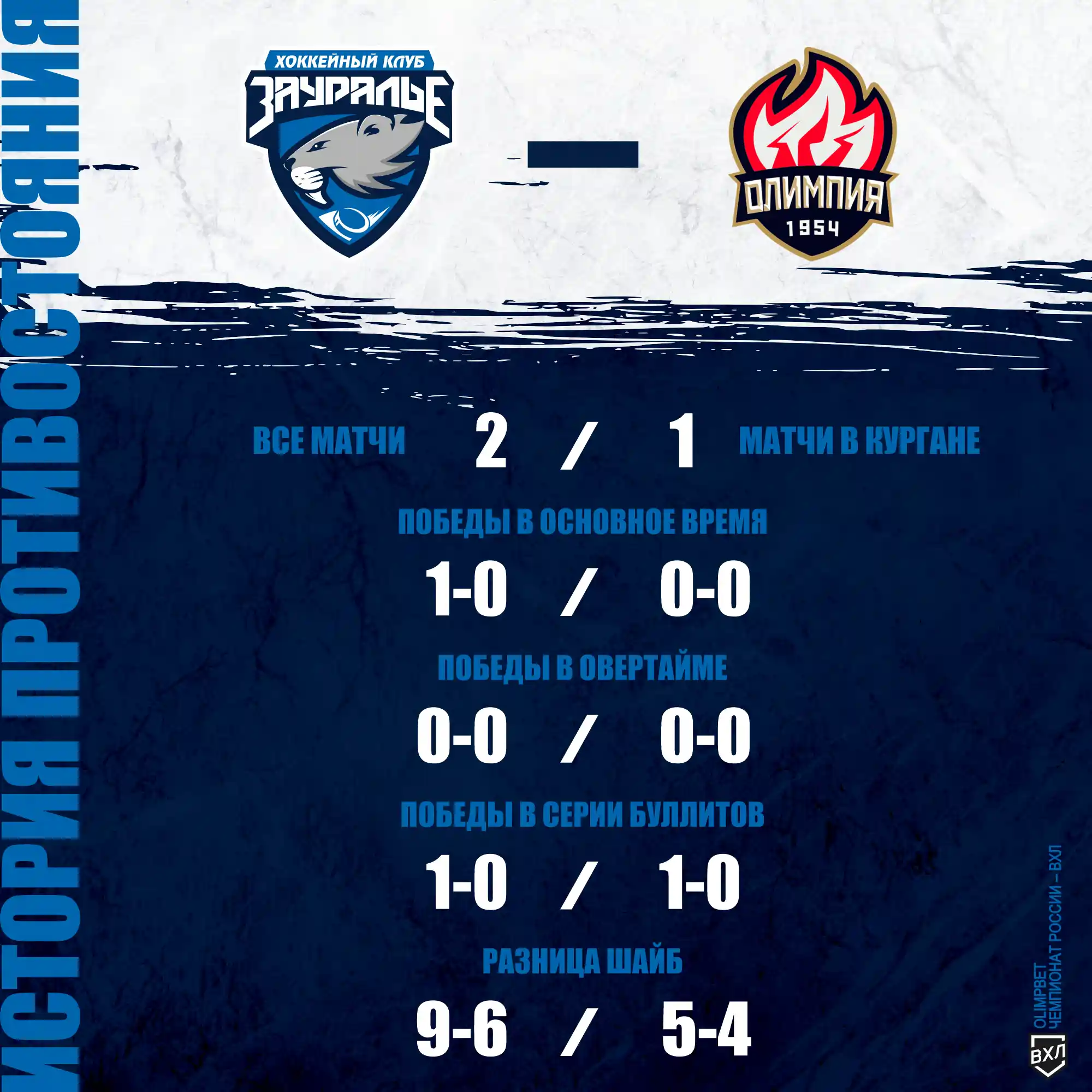 «Олимпия» играет в ВХЛ только второй сезон, а потому встречались мы с ней всего 2 раза, и в обоих случаях одерживали победы. Причем, в Кургане – в серии буллитов.