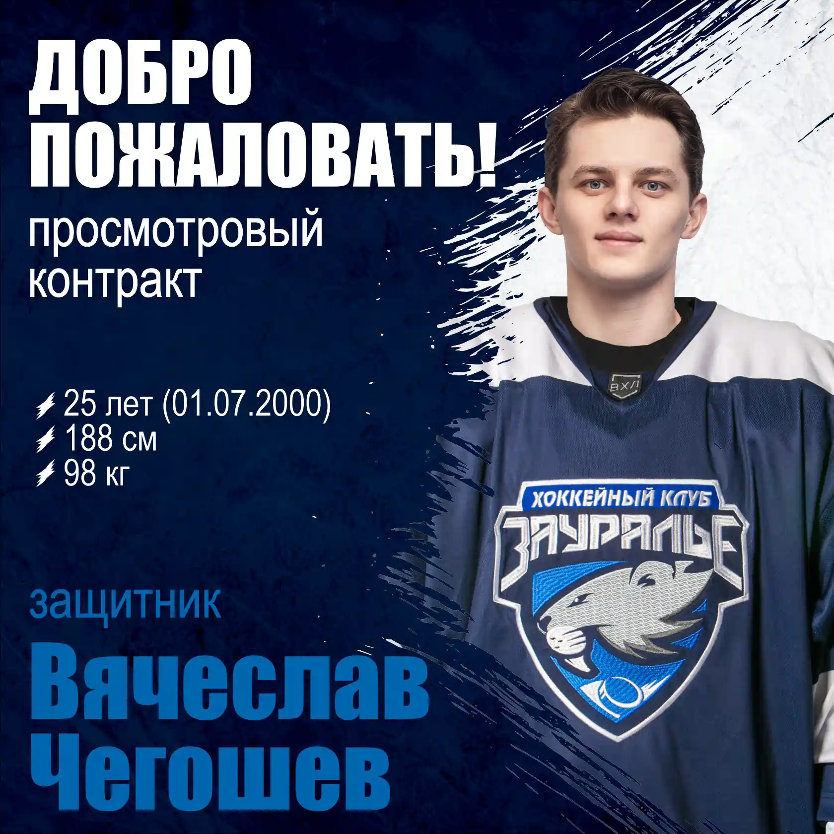 Приветствуем в команде новичка Вячеслава Чегошева – с 25-летним защитником заключен просмотровый контракт.